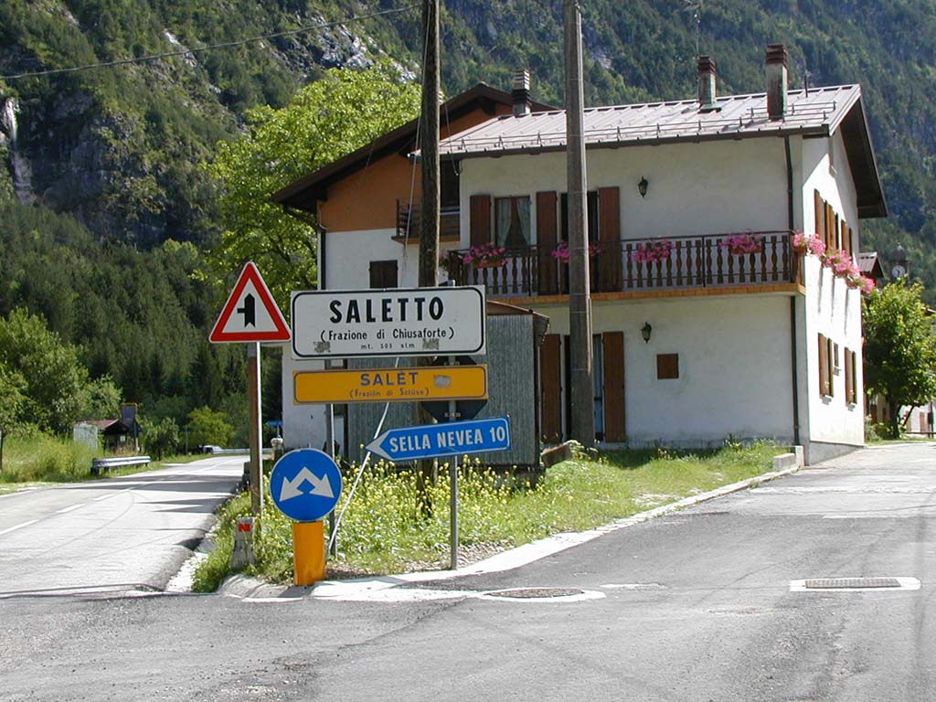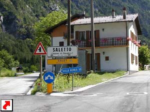 ![]() L'entrata a Saletto, arrivando da Sella Nevea |