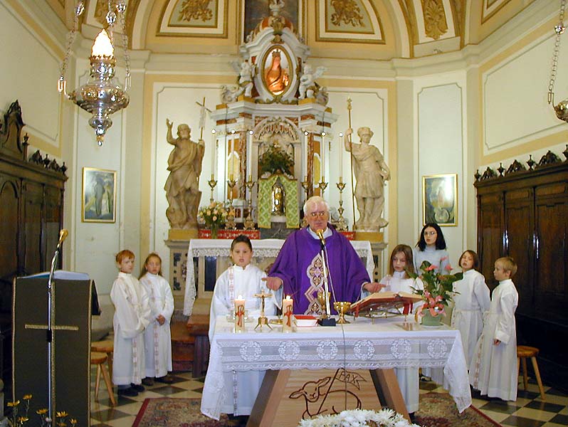 dell'interno della parrocchiale, prima e durante la celebrazione