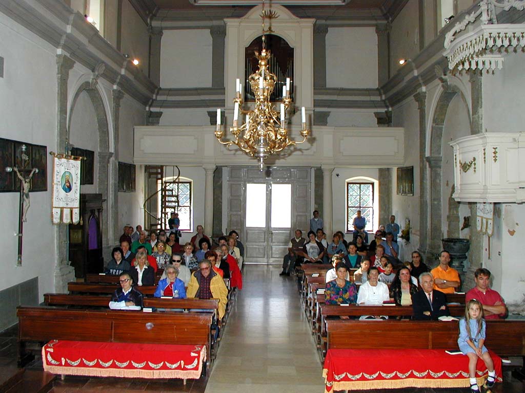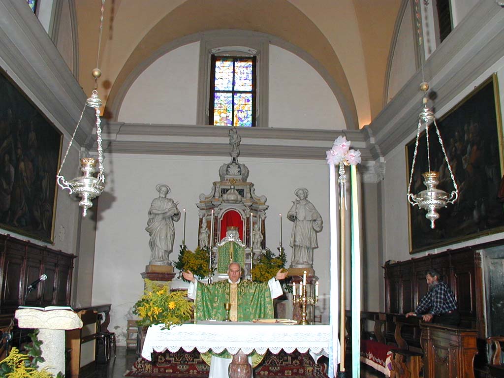 Sopra, un flash verso l'altar maggiore.