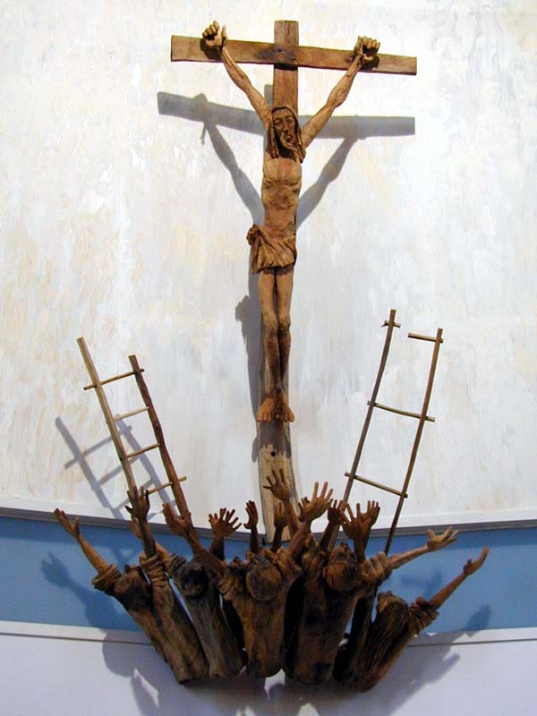 scultura in legno che sovrasta l'altare |