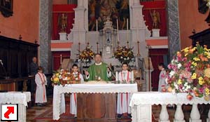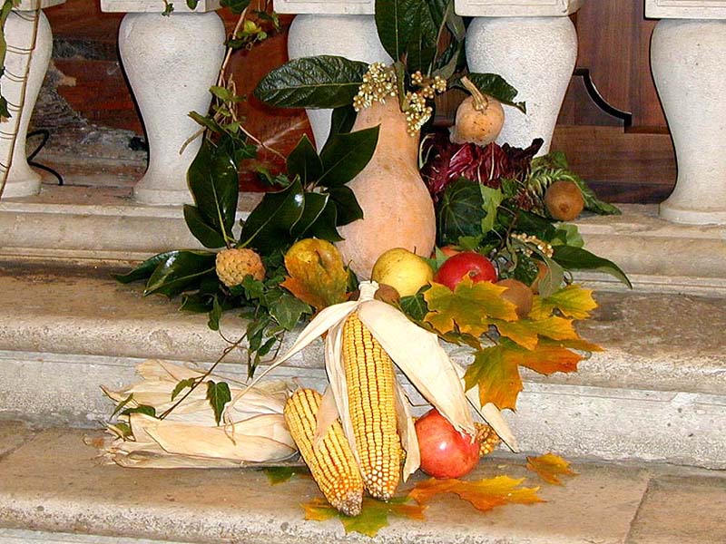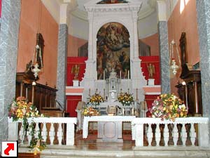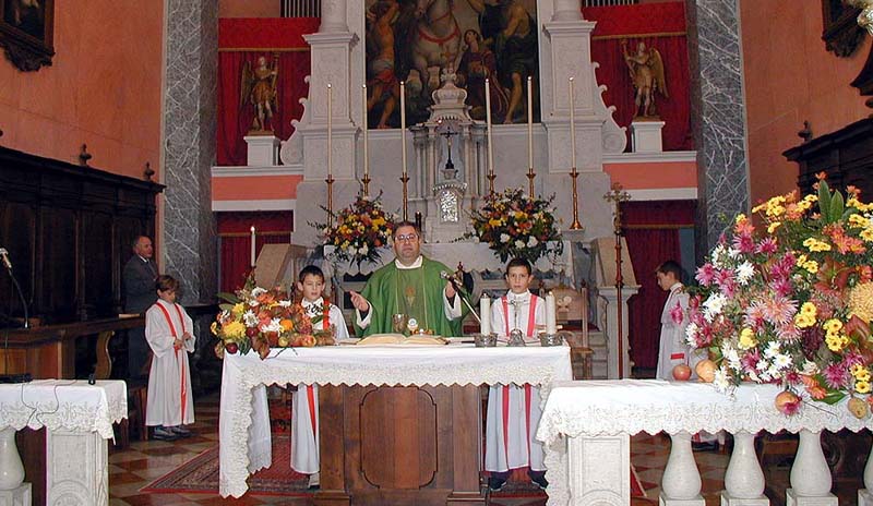 parrocchiale, addobbata con composizioni di fiori, frutta ed altri