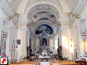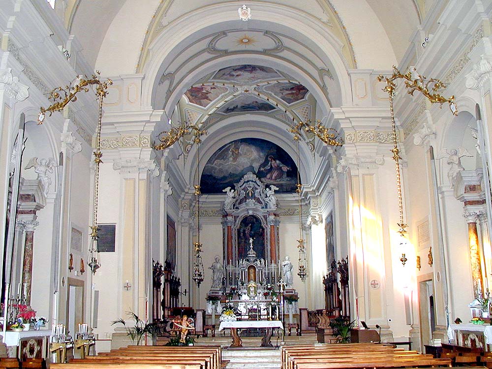 è ad unica navata, con calibrato presbiterio e nicchie laterali; il
