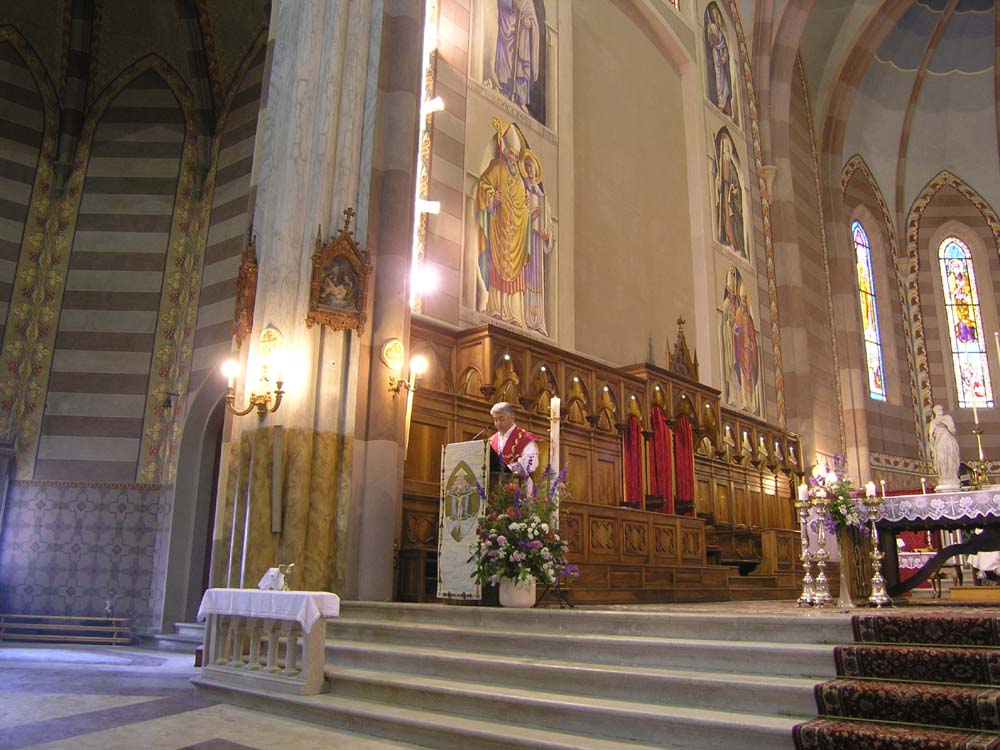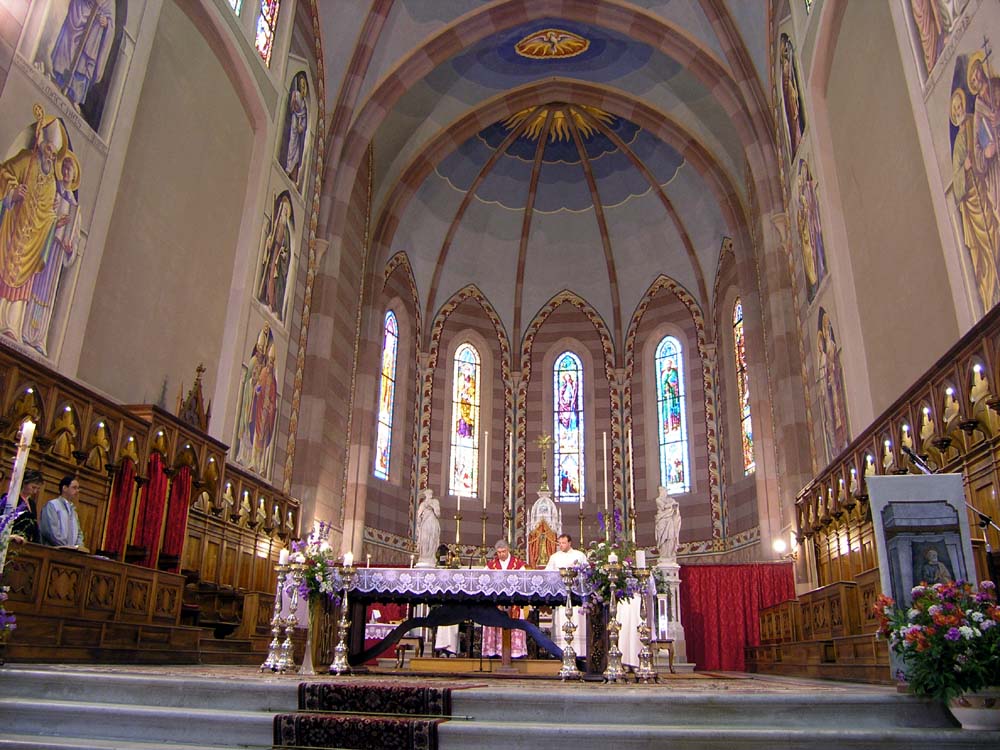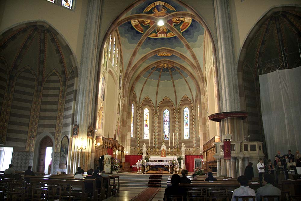 dipinti e vetrate (istoriate eseguite in questo secolo, altari in marmo