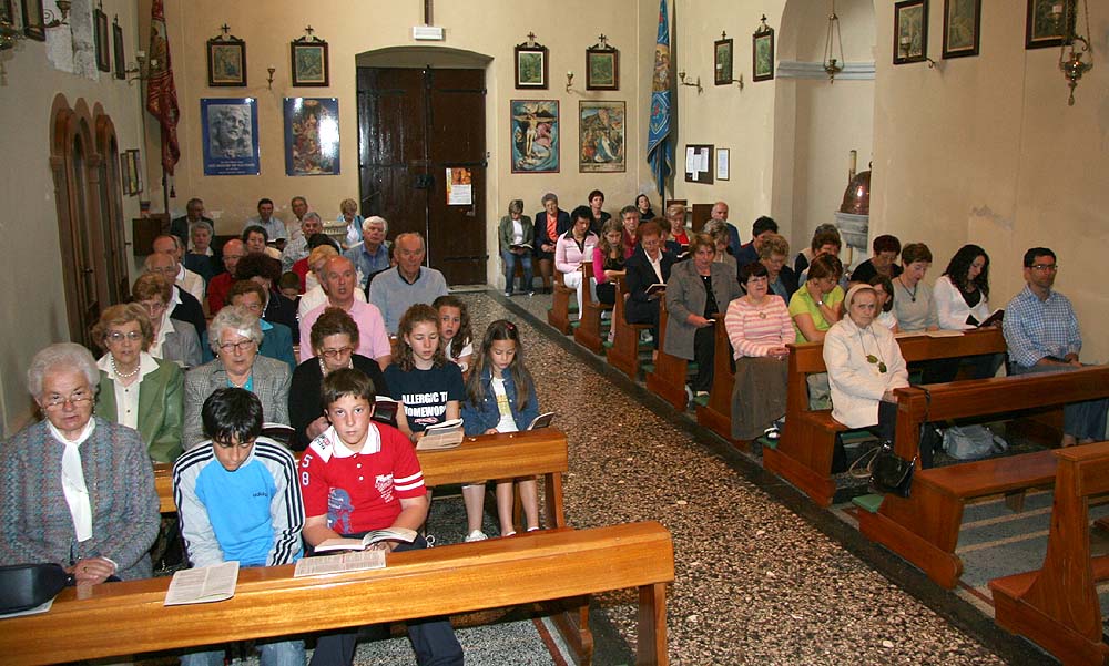 ritrovandosi tutti dopo la Messa per un convivio nel vicino "centro