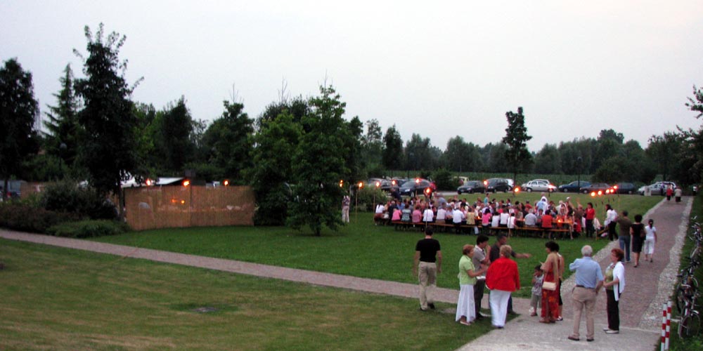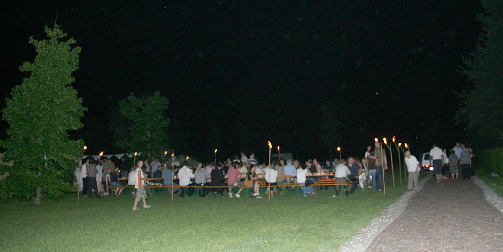 all'aperto. Con l'uso di sole torce per illuminare , le pietanze