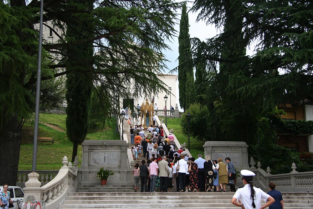 superando gli oltre 80 gradini della scalinata monumentale, che