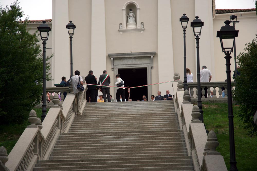 chiesa, la scalinata monumentale addobbata con bandierine