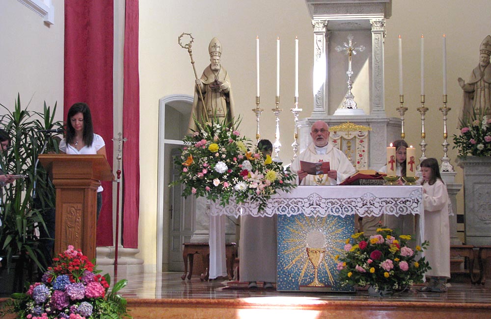 inte glesie di Borc (la parochiâl di Sant Nicolau) celebrade par