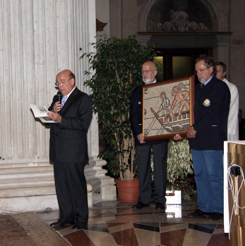 porge un saluto a mons. Pietro Brollo e presenta il dono