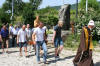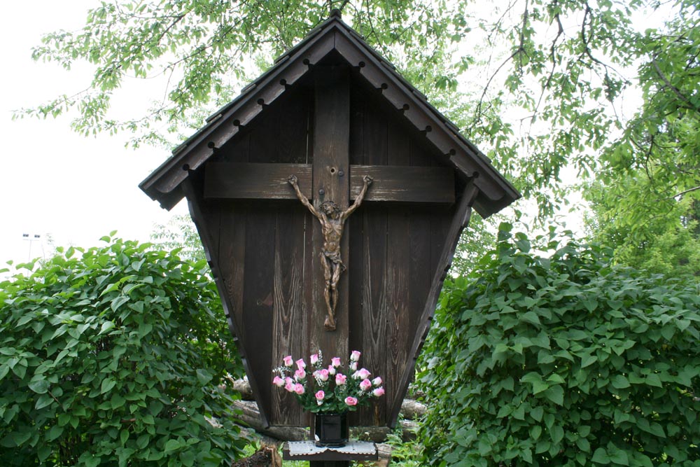 L'artistico Cristo intagliato all'entrata del paese, davanti al