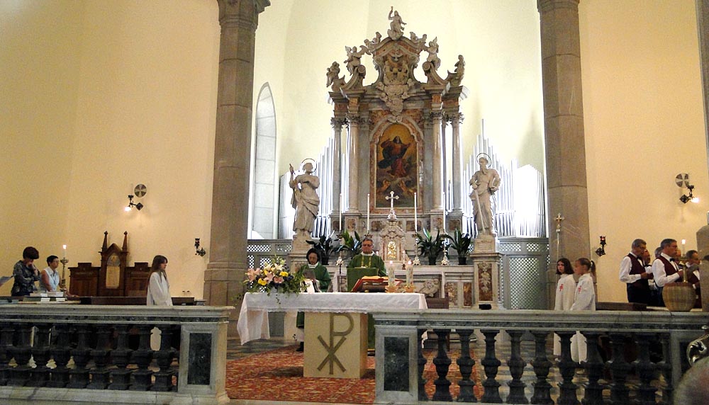 ...la navata della chiesa vista dal fondo e dal presbiterio...