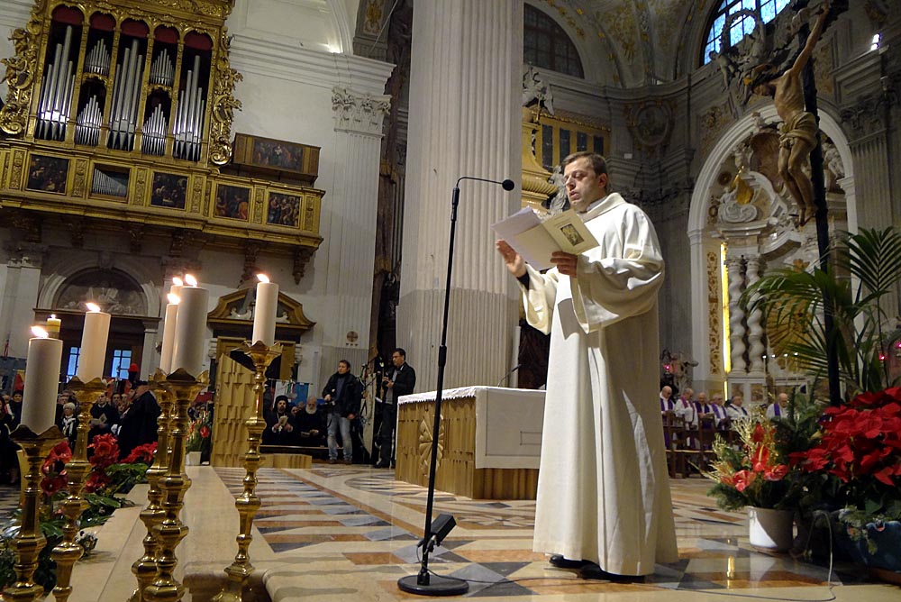 mentre i prelati salivano le scale del presbiterio, sono riuscito a