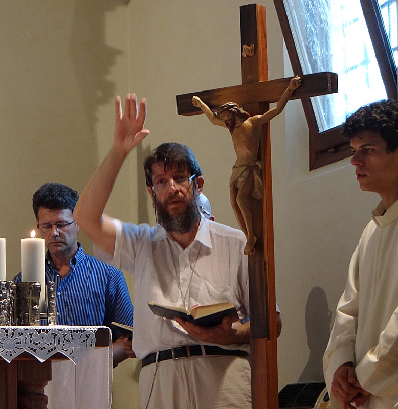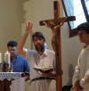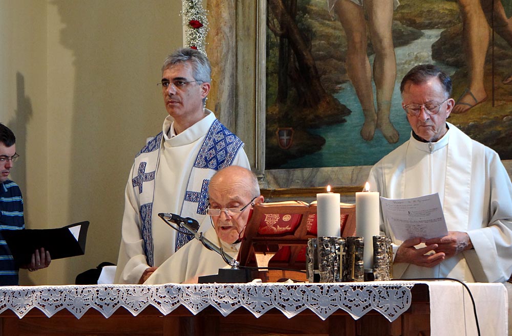 ...il maestro Sandro Bergano che guida il coro e l'assemblea...