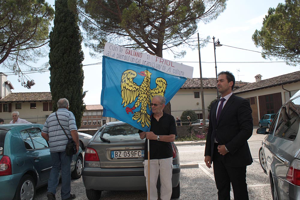 tante bandiere del Friuli. Una accompagnata dalle parole: «Cun