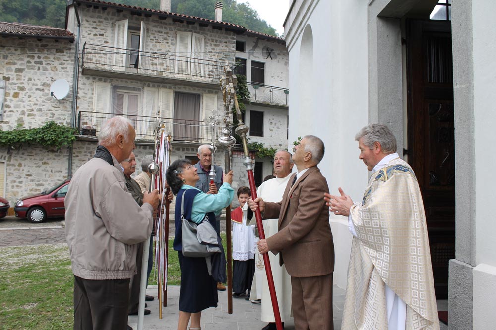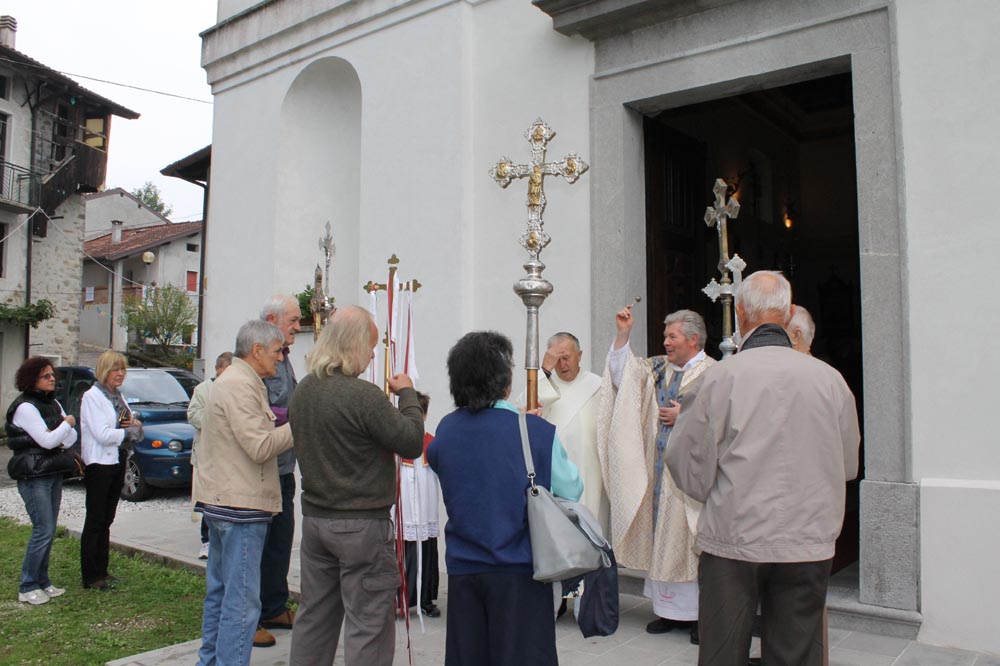 delle parrocchie vicine, "baciano" la croce della chiesa di Prossenicco...