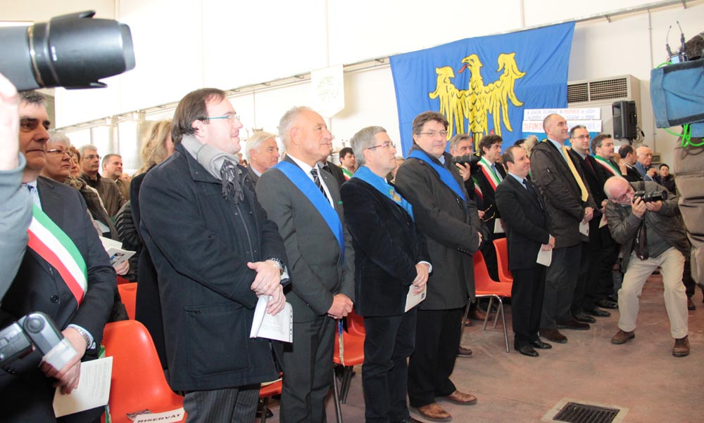Cooperativa agricola di Lonzano, attorniati dai macchinari per la