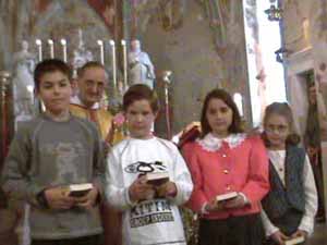 Un momento della Santa Messa e la presentazione di 4 dei 5 cresimandi.