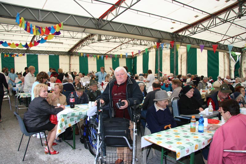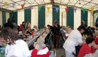 nelle varie tavolate sotto il tendone.