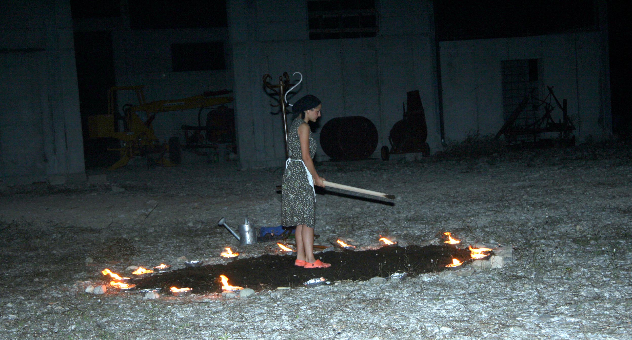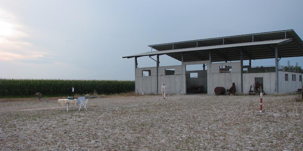 ghiaia e grandi sassi di fiume, un capannone agricolo,