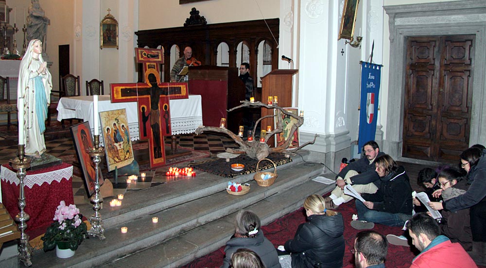 iniziali, l'incontro è proseguito con canti, preghiere e letture, in una scenografia
