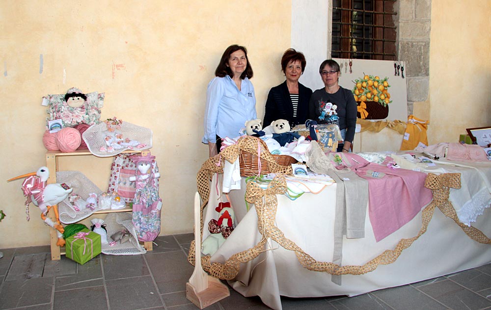 gruppo di signore con i loro "lavoretti fatti a mano", impegnate nella