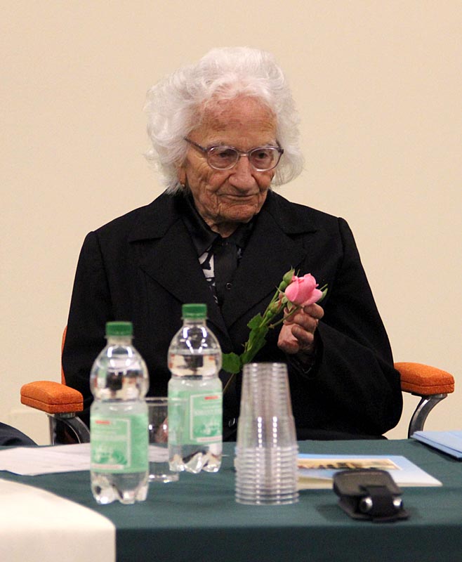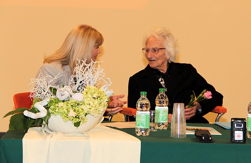 loro compaesana di 102 anni seduta in prima fila accanto alla figlia,