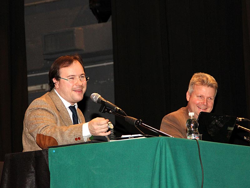 moderarŕ Federico Vicario, president de Societât Filologjiche Furlane. Fra