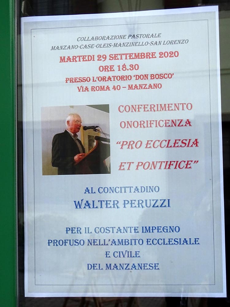 Peruzzi, insignito dell'onorificenza "Pro Ecclesia et Pontifice"