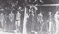piazza il patibolo con dei pali requisiti a un contadino del luogo.