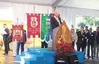 presentati con 180 labari marciando dietro al Corpo bandistico Val