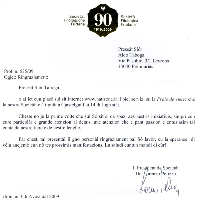 natisone". Un biglietto scritto a mano e in friulano si legge: