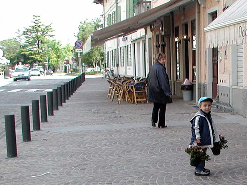 strisciavano sull’asfalto, ed attraversava la strada sulle strisce pedonali,