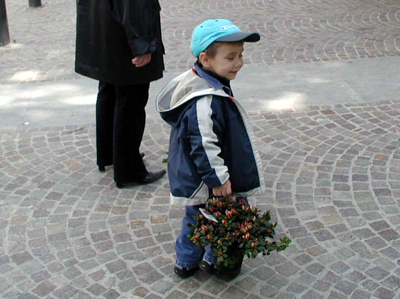 due spanne, che come un bravo ometto trasportava due vasi di fiori che quasi