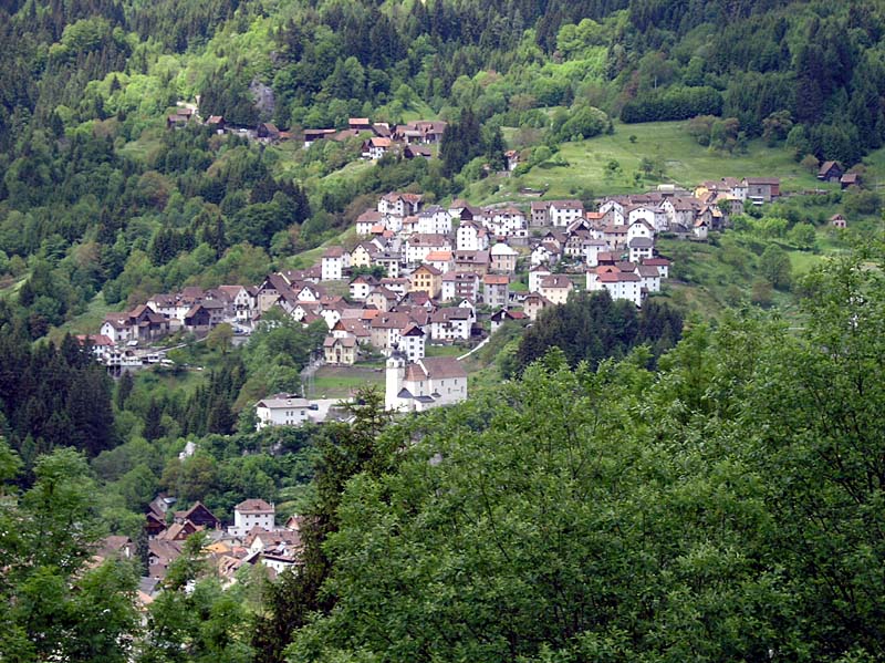 verso il basso, con la sensazione di osservare Rigolato con un aereo,