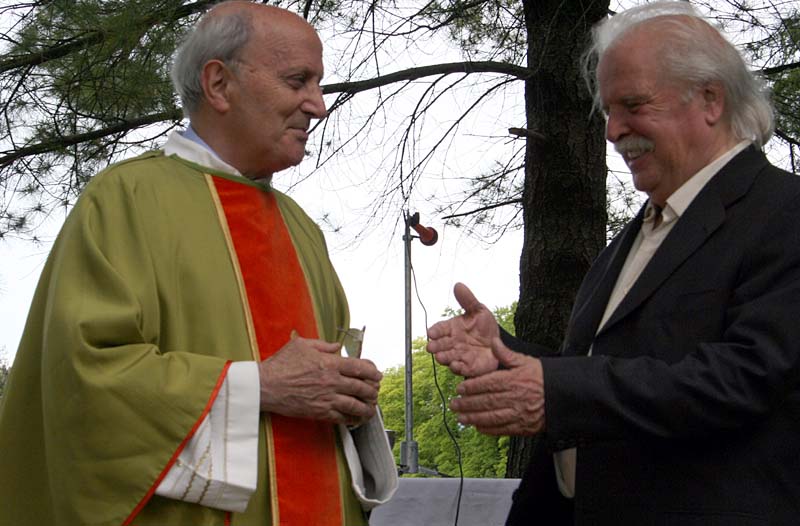 che si era avvicinato all’improvvisato altare per salutare il parroco.