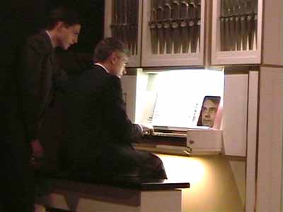 L'organista Mauro Macrì, "assistito" dal figlio