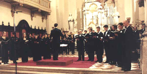 Il Coro Polifonico di Ruda, in una foto di repertorio e sotto