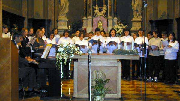 I primi hanno proposto delle riflessioni legate al Natale, accompagnandole con la proiezione di diapositive che hanno intervallato i diversi momenti musicali. Il giovanissimo coro della Scuola Media "A. Schweitzer" ha eseguito con freschezza alcune composizioni del dinamico e valente prof. Tomatis, direttore del coro stesso.