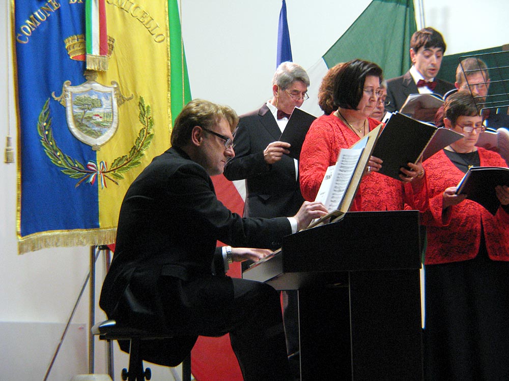 Italo Montiglio, direttore - Italo Montiglio docente, direttore di cori, organizzatore musicale ed artistico. Docente di educazione musicale nella scuola dell'obbligo (1970-1985); docente di ruolo ordinario di Filosofia e Psicologia nelle scuole superiori statali (1985-1997); docente di Fondamenti della comunicazione musicale, Metodologia dell'educazione musicale e Didattica della musica presso la Facoltà di Scienze della Formazione dell'Università di Trieste (1990-2006); dal 1990 docente di Cultura musicale e di Didattica della musica presso la Facoltà di Pedagogia di Pota. Già dal 1972 è attivo nell'ambito dell'Associazione C. A. Seghizzi di Gorizia, prima in qualità di direttore del coro, in seguito (1975) come direttore artistico e dal 1997 come presidente. E' direttore del coro maschile Lorenzo Perosi di Fiumicello (dal 1979) e del Coro a voci miste della Basilica di Aquileia. E' inoltre autore di testi musicologici e di pedagogia musicale pubblicati dalla Casa editrice Le Monnier di Firenze; curatore di 31 volumi degli Atti dei Convegni Europei di studi sulla pedagogia musicale e sulla musica corale (Edizioni Seghizzi, Gorizia); autore di saggi di cultura musicale pubblicati da case editrici regionali e nazionali; curatore di pubblicazioni a carattere musicologico; membro di giuria dei concorsi internazionali di canto corale di Arezzo, Tours, Varna (Bulgaria), Debrecen (Ungheria), Tolosa (Spagna), Montreux (Svizzera) e di molti altri concorsi nazionali e regionali italiani e esteri; fondatore e presidente del Cerido (Centro Internazionale di Ricerca Documentazione Progettazione e Sperimentazione Interculturale e Multimediale).