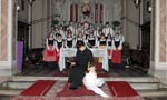 ripetuto tre volte, essendo tre il numero di Dio. Si noti che il