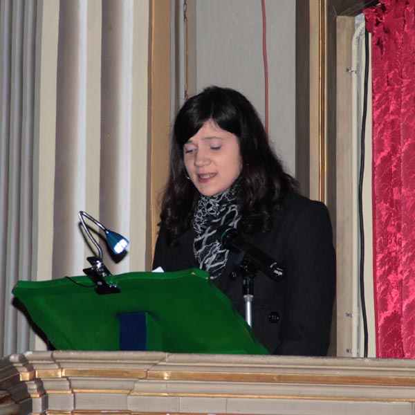 teatrale Sot La Nape, leggendo dal pulpito dei brani che
