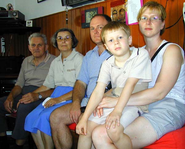 Giovanni Calligaris con la moglie Giuliana, il figlio, la nuora ed il nipotino.Messaggio per Guido Zanetti