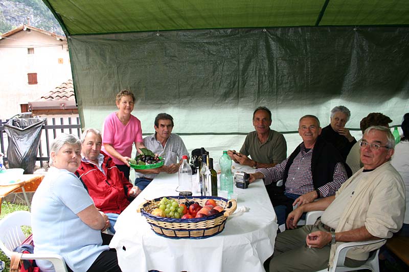 sotto il tendone preparato dagli alpini salettani, per fare onore al lavoro