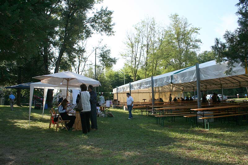 impegnato nell’ampio spiazzo erboso ombreggiato, dove era stato montato un