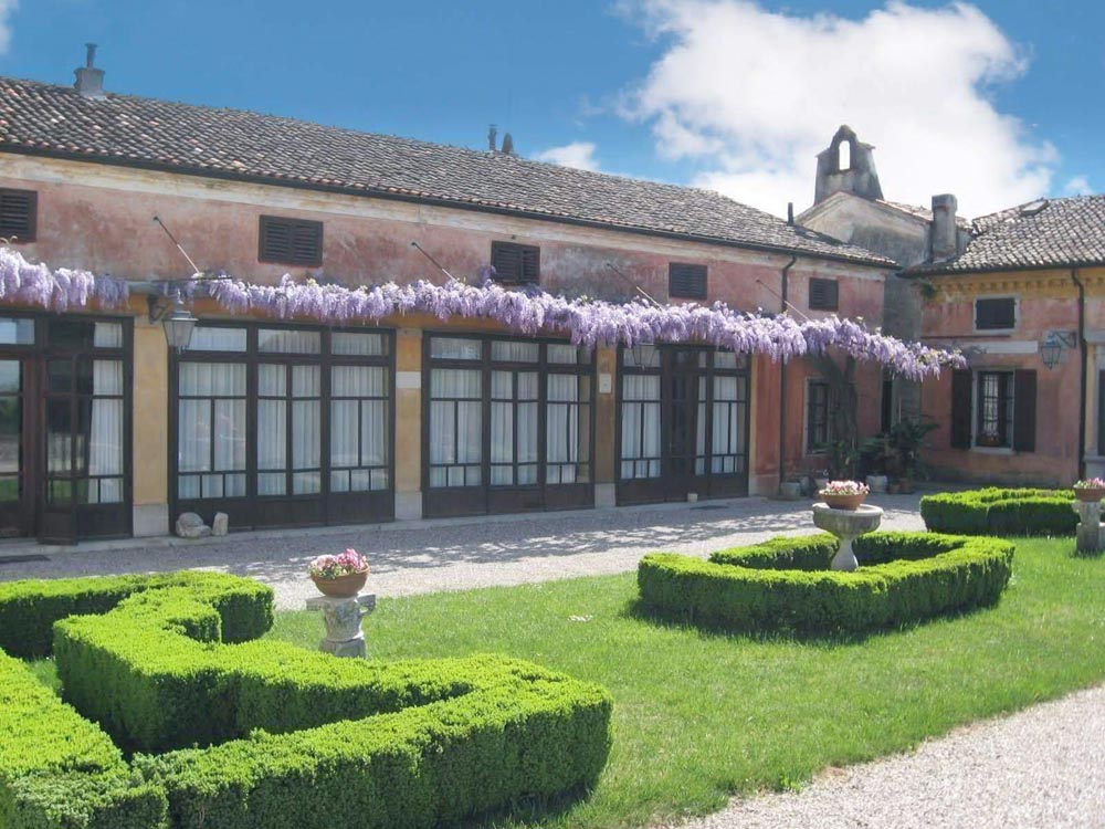 si apre sul giardino all’italiana, dove il glicine secolare e la geometria