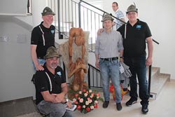 accanto ad una pregevole scultura in legno di Franco Maschio, che