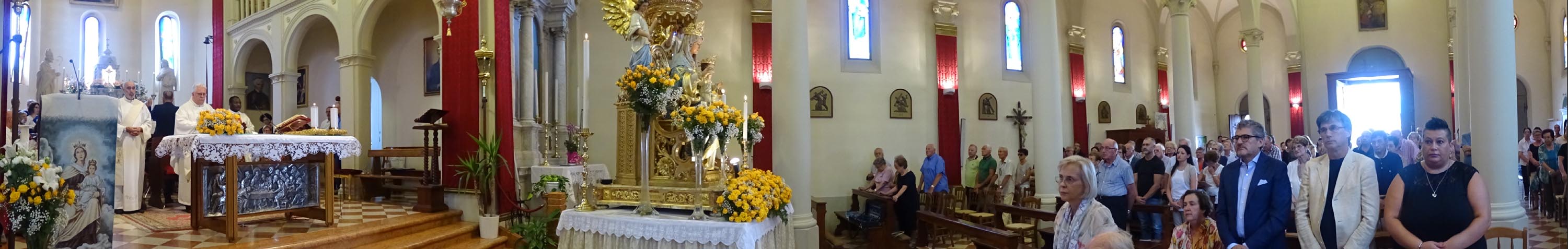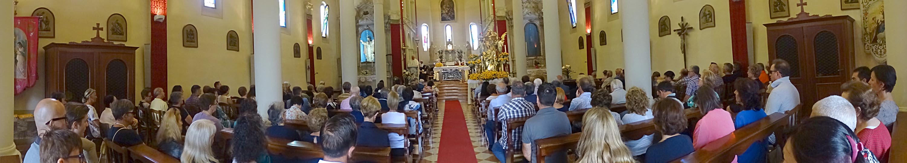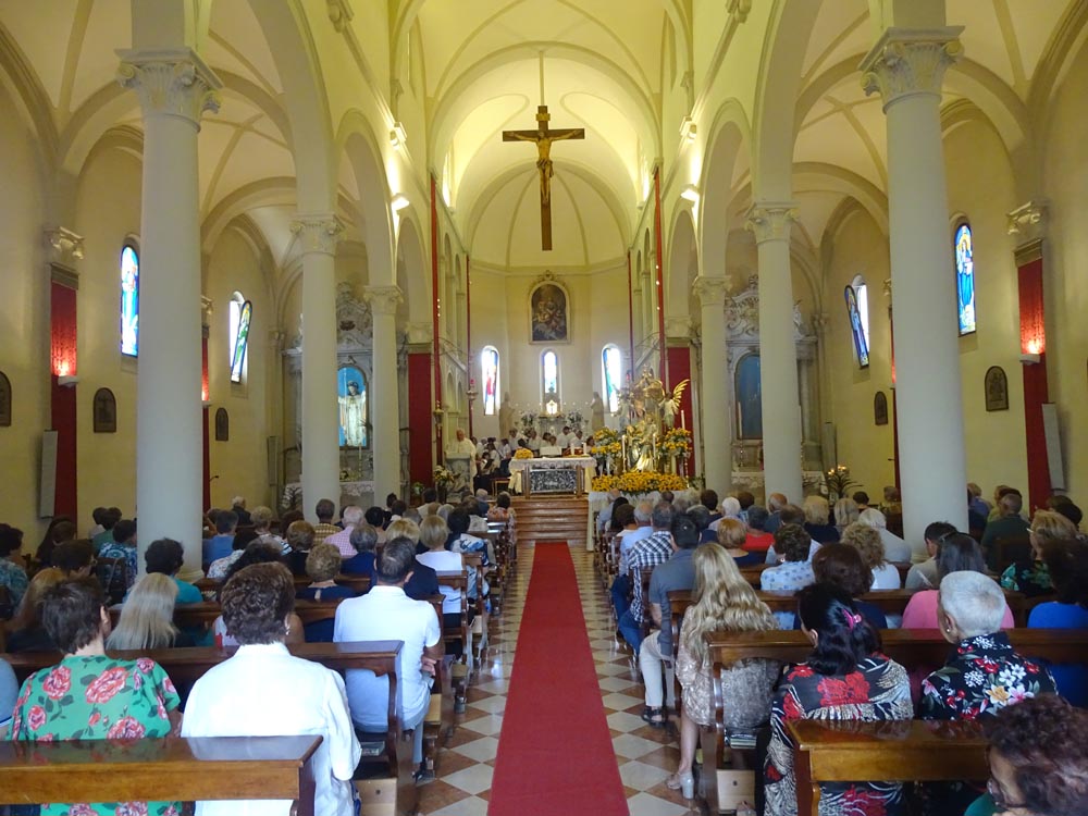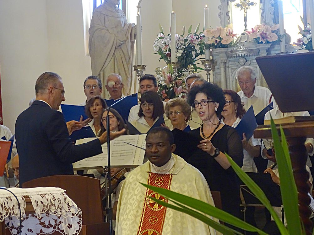 E' stato sufficiente il trafiletto riportato su Vita Cattolica, per decidere di tornare nella Bassa Friulana ai festeggiamenti in onore di S. Maria Maddalena, sicuro di poter assistere ad una cerimonia piacevole in particolare dal punto di vista musicale. Durante le prove, si trattava solo di studiare il sistema per coprire opportunamente la vasta zona occupata dal ampio gruppo corale e strumentale, non essendo opportuno invadere il presbiterio con ingombranti aste microfoniche. Ho quindi utilizzato la mia modesta attrezzature piazzando due micro registratori sull'altare celandoli nel folto vaso di fiori; un terzo sistemato dietro la statua Madonna orientato verso il presbiterio; un quarto attaccato ad un delle casse audio della chiesa. Nondimeno sono stato costretto a miscelare e sincronizzare tra loro due della tracce musicali prodotte, per dare il giusto risalto alla voce del soprano Raffaella Peressin nella dolce Ave Maria, un canto slavo armonizzato da Oreste Rosso.
