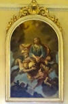 Anche se centra ben poco con la chiesa e con la Sagra in corso in quella località della "Bassa", ci ha incuriosito l'espressione del gattino disegnato da un moderno "Jacum Pitôr" su un muro privato a lato del sagrato. D'altra parte altre immagini esterne della chiesa si possono trovare nei precedenti servizi realizzati il 3 Febbraio 2008 ed il 18 Luglio 2010. Durante le prove abbiamo colto qualche immagine del coro e orchestra, peccato che nessuno abbia proposto una posa per la foto-ricordo. Ci siamo soffermati con l'obbiettivo sulla statua della Madonna del Carmine, che secondo un signore che la stava ammirando "ha uno sguardo espressivo che ti insegue in qualsiasi posizione ti sposti...". La Messa era come da tradizione in onore di Santa Elisabetta, raffigurata nel quadro in alto del presbiterio.