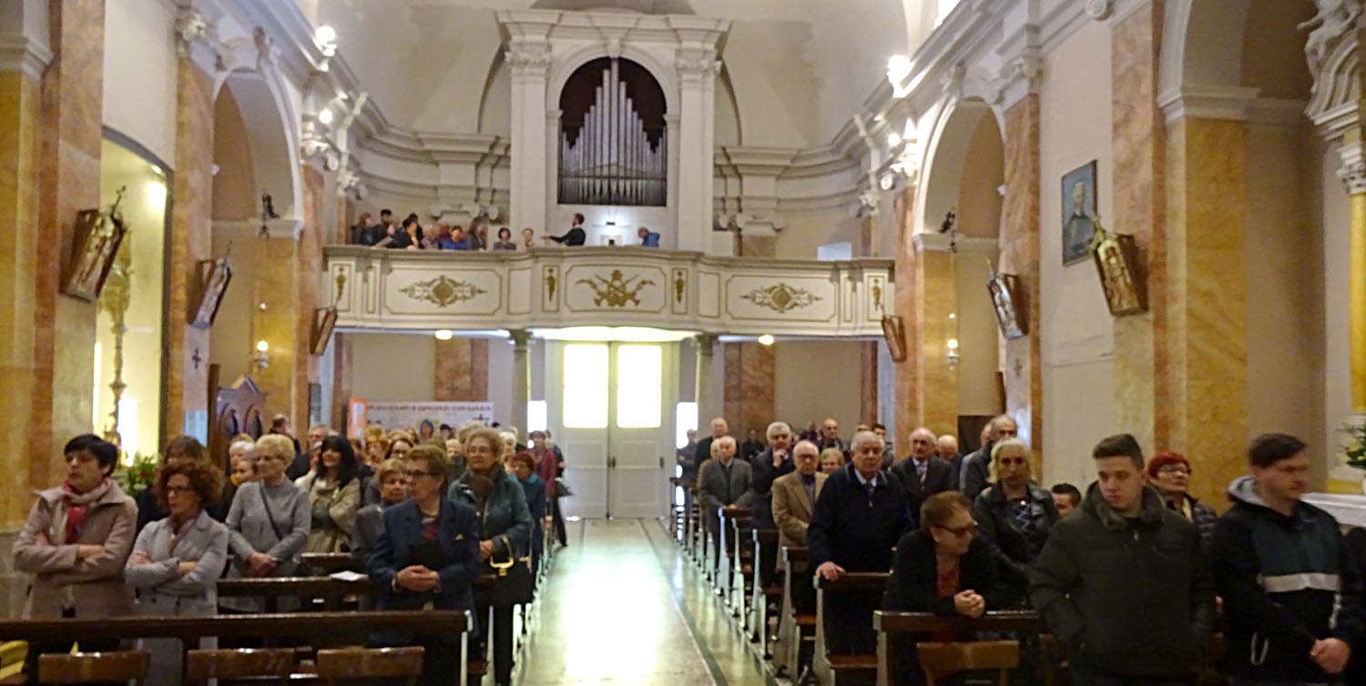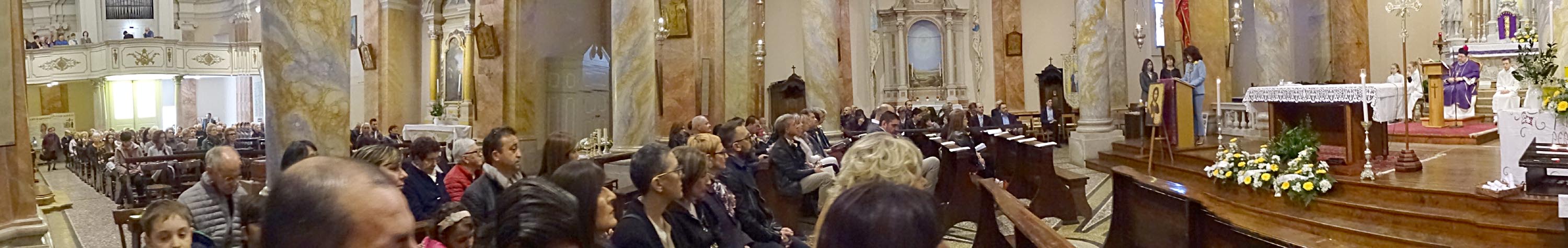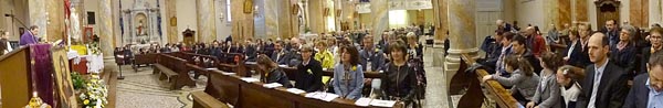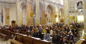 Alle 14.30 l'ampia chiesa era affollatissima. Il