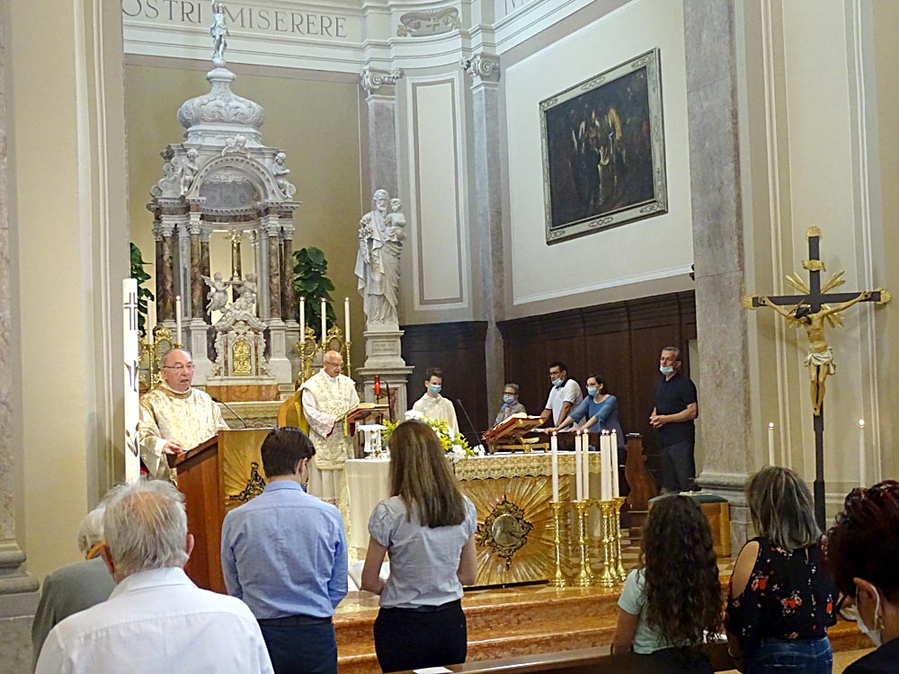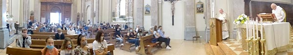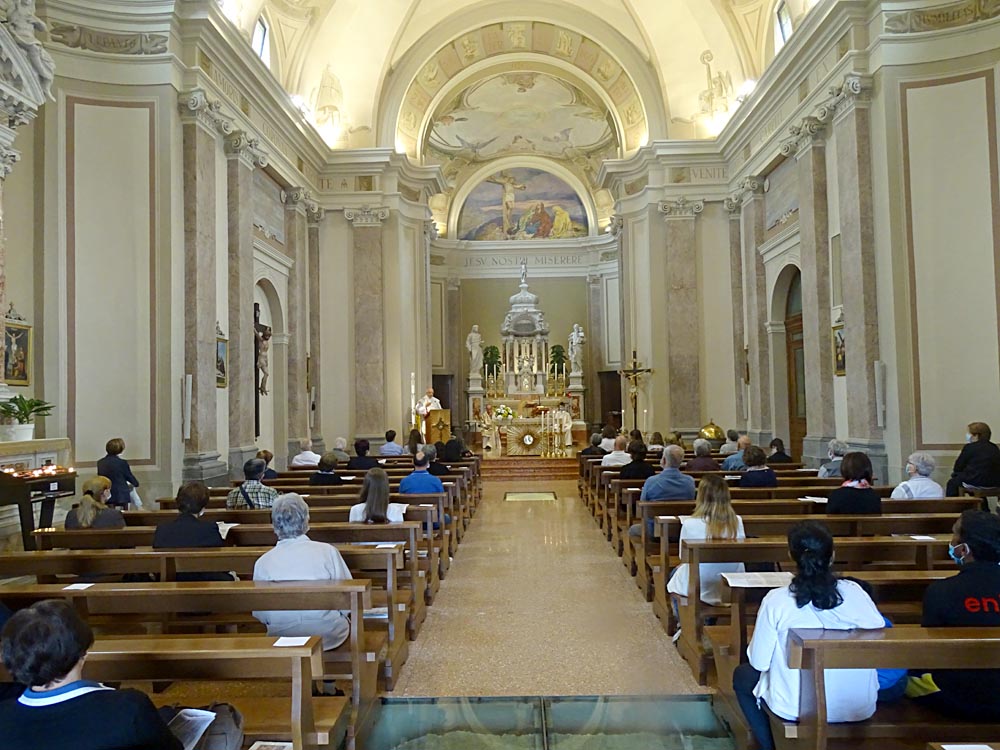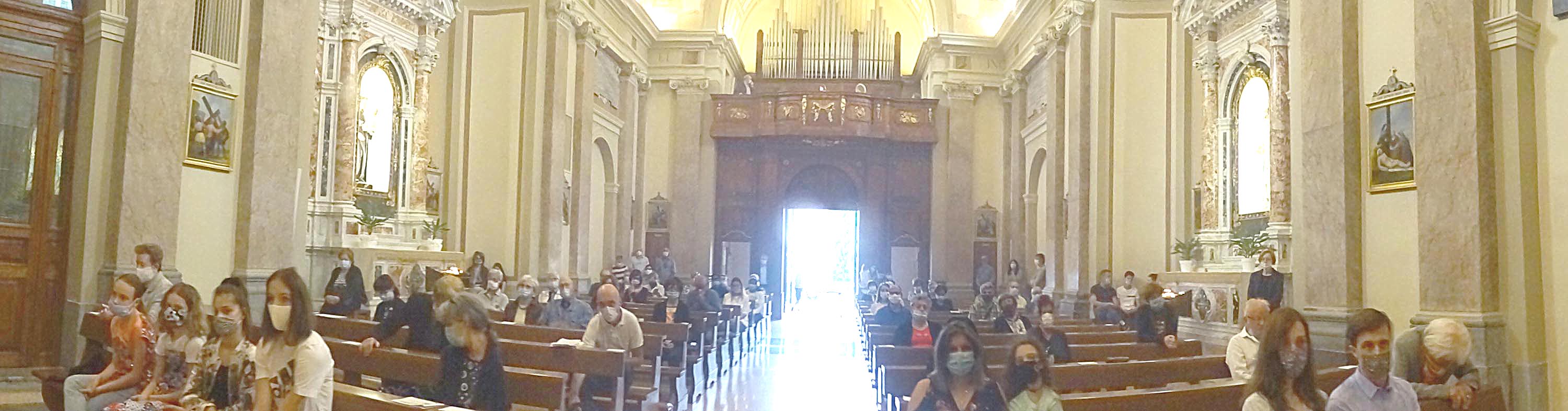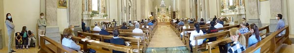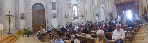 allargata sulla navata con i fedeli regolarmente distanziati...